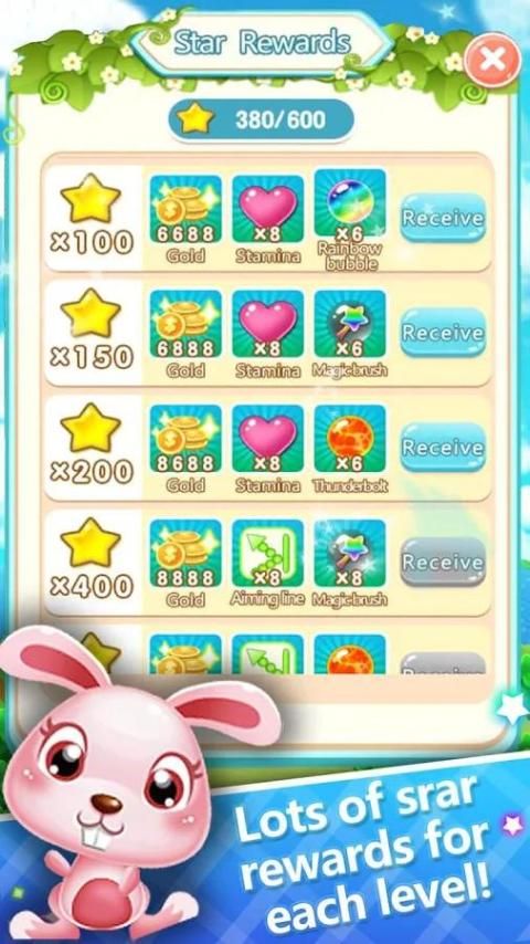 • Cute Bunny: добавляет пузырь жизни, чтобы увеличить количество выстрелов, поп-пузырь с помощью симпатичных приятелей-зайцев.