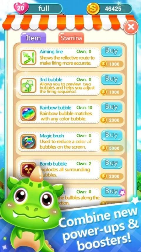 • Bomb Bubble: поражает все окружающие пузыри, улучшает навыки поп-музыки
