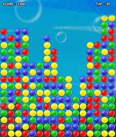 There is a grid of bubbles of four different colors. When you click on a grid, all the bubbles that are connected to this bubble and are of the same color will be destroyed