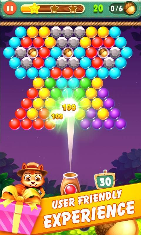 Bubble Shooter Лихорадка классический матч 3 и удивительные съемки пузыри игры. Матч 3 или более шариков одного цвета, чтобы заставить их лопнуть и очистить все пузырь, чтобы выровнять с помощью этого бесплатного матч 3. съемки пузырь игры.