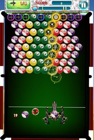 * Нажмите, где вы хотите, чтобы стрелять Bubble Snooker