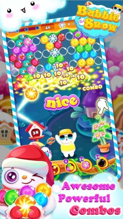 Bubble Снег весело пузырь шутер. Симпатичные Снеговик стрелять пузырьки поп и падение путь к победе с небольшим милые оленя сопровождают. Это так весело и захватывающая собирать красивые снежинки и собирают энергию пушечное пузырь! И когда вы снимаете пузырь для двойной отскок от стен, вы получите большой бонус от Деда Мороза. HO! HO! HO!
