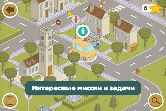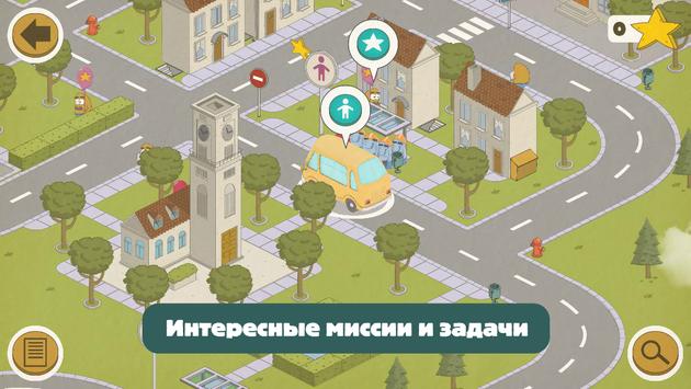 В этой учебной игре для дошкольников (4 ) задача игрока - управлять автобусом, исследовать карту города, искать лучший маршрут для выполнения миссии, к тому же не забывая о правилах дорожного движения. Чем дольше играешь и чем больше звезд приобретаешь, тем круче автобус можешь выбрать!"
