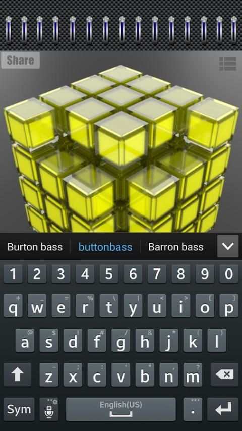 Я включил функцию управления с клавиатуры в этом! Просто нажмите кнопку Показать клавиатуру, и вы можете использовать свой андроидов клавиатуру для управления куб.