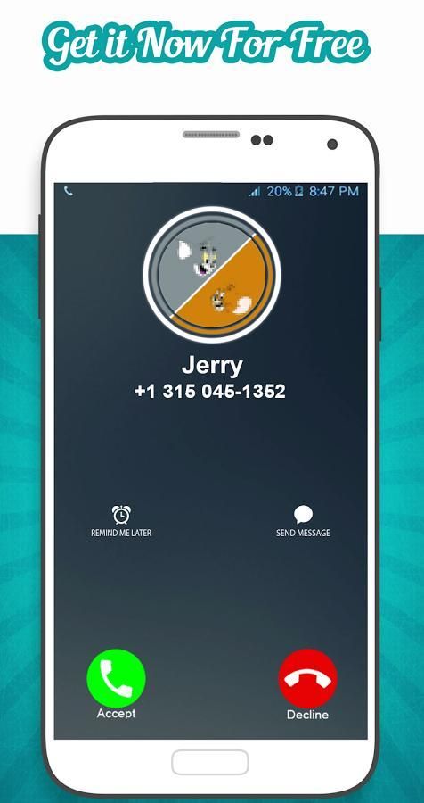 - Содержит смешные голоса: Для того, чтобы сделать это дети телефон или виртуальный питомец кот канистра вызов шалость более реалистично Наша команда добавила удивительные голоса Tom Cat и канистра мыши звуки этой любимой звезды делают вид, позвоните, чтобы вы шутки друзей легко симулировать говорить с виртуальным питомцем по телефону, и пусть они считают, это Том & Джери поддельной вызова имитатора.