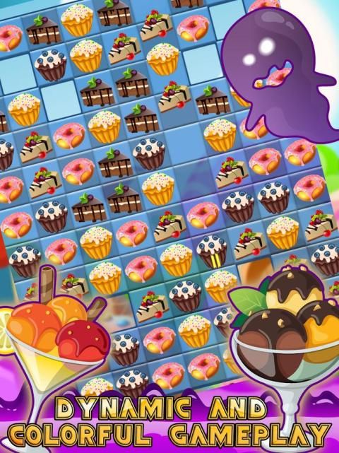 • Проведите вкусный десерт, чтобы создать ряд три или больше того же самого сладкого, чтобы очистить их.