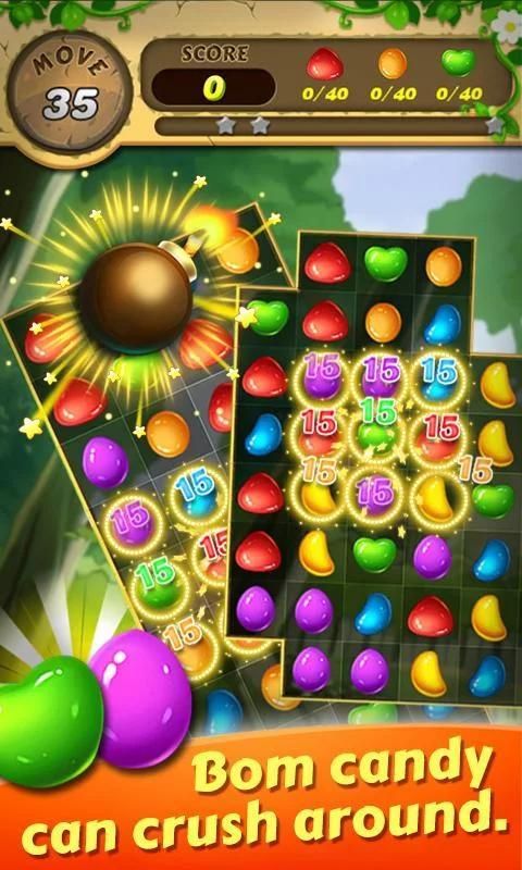 - Матч 5 конфеты в крест-накрест, чтобы создать Бом конфеты могут подавить вокруг.