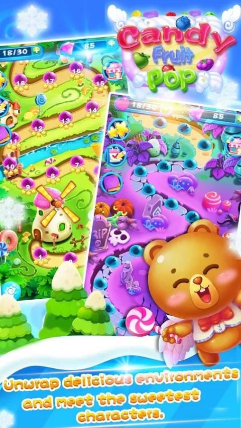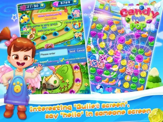 Candy Fruit Pop совершенно новая игра приносит удивительный способ матч-3 веселых приключения головоломки, более божественных комбинаций и сложных режимов игры Наполненный фиолетовый конфеты и торт!