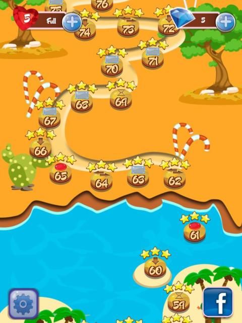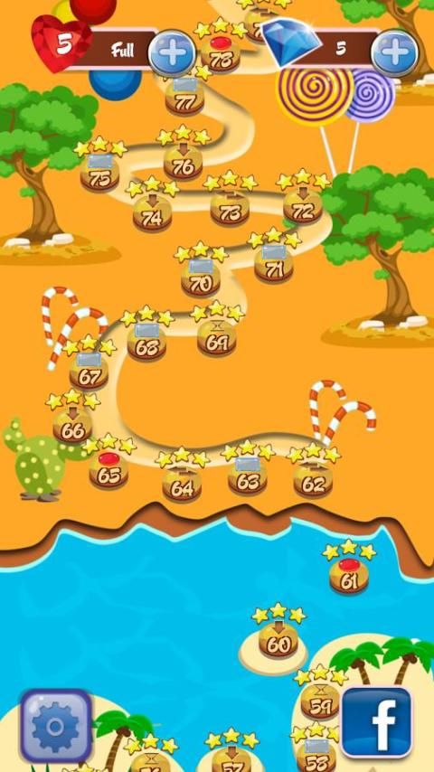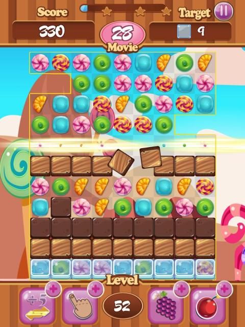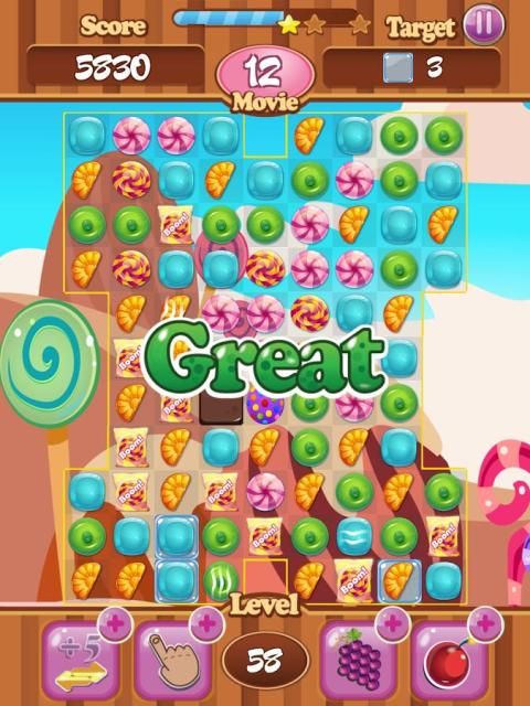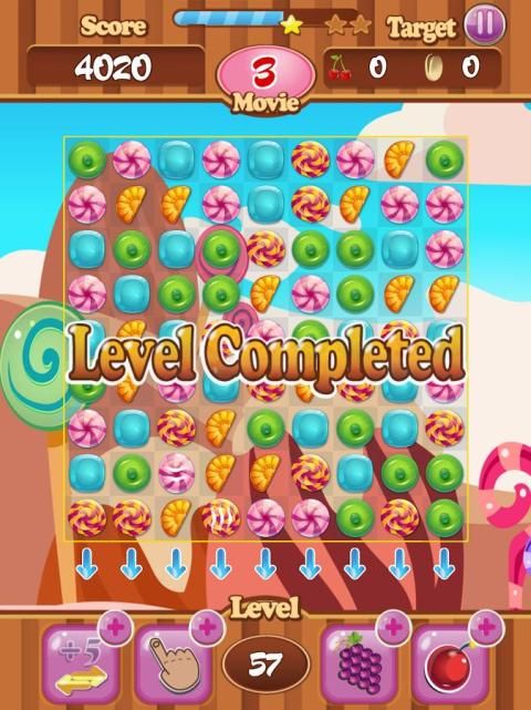 есть 100 уровней для вас, чтобы испытать. это может быть трудно получить целевой счет на высоком уровне. Если у вас есть разумно изменить положение конфет, вы получите бонусные очки