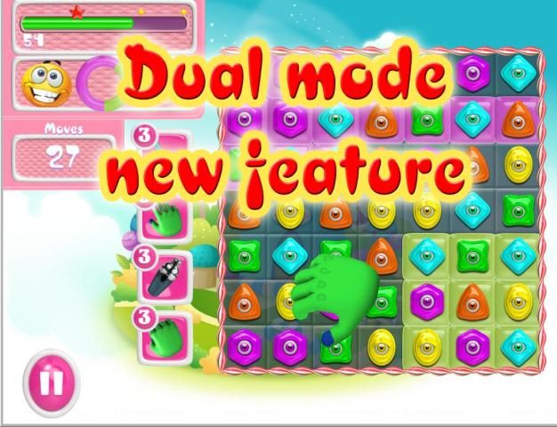 Candy Monster Match 3 игры нового поколения. В отличие от аналогичных игр, CandyMonster имеет много новых функций, которые никогда не появлялись в других играх.