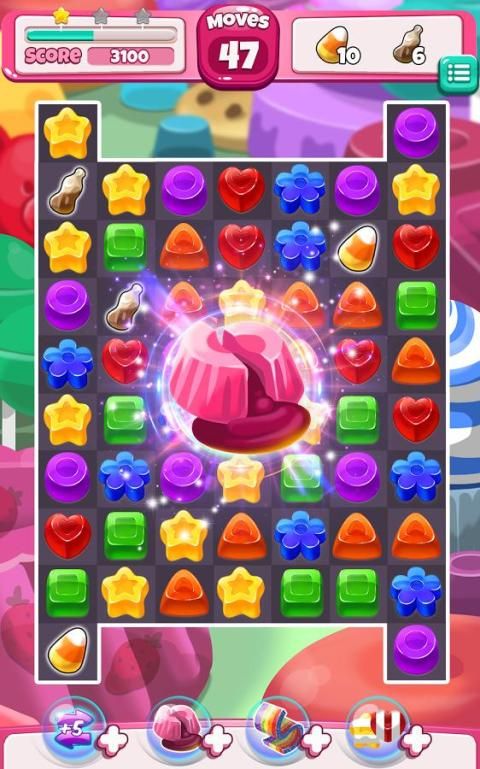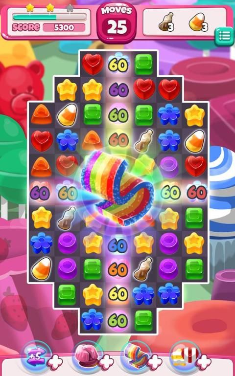 * Поменяйте и сравните 3 или более вкусные лакомства, чтобы раздавить и удалить с доски.