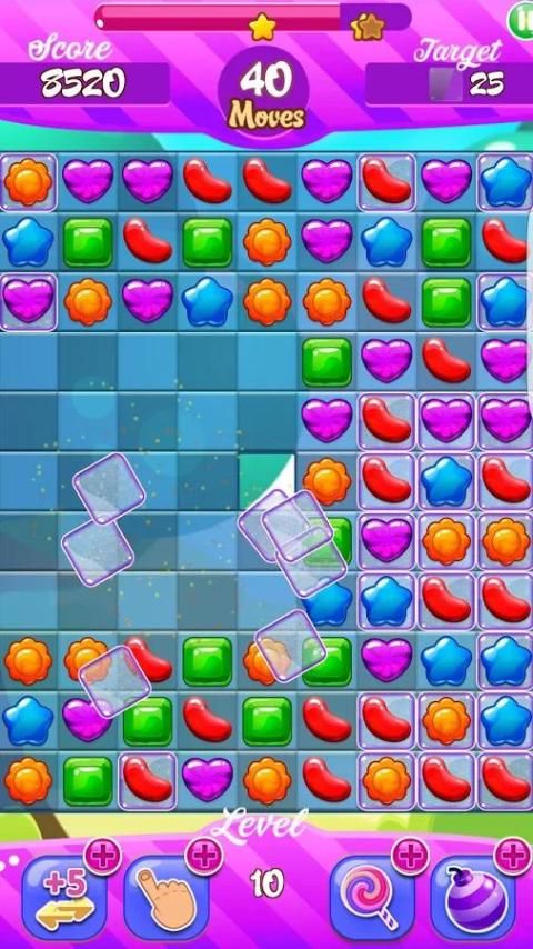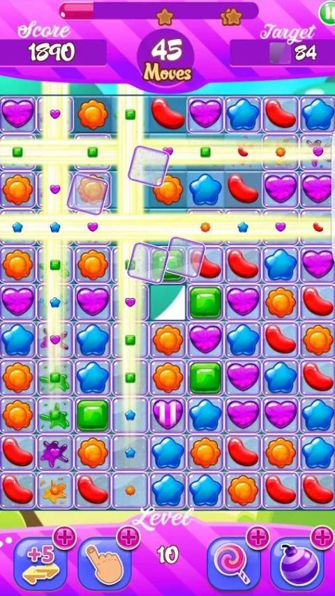 - CANDY BLASTER Пауэрс: Используйте сладкие бонусы конфет Королевства и имеют некоторые дополнительные шаги, заменить цвет конфеты или взорвать одну из конфет, чтобы согласовать поле,
