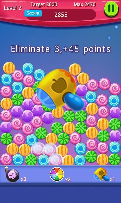 Играть просто, найти и устранить два или более одного и того же цвета конфеты, конфеты связано больше, тем выше балл.
