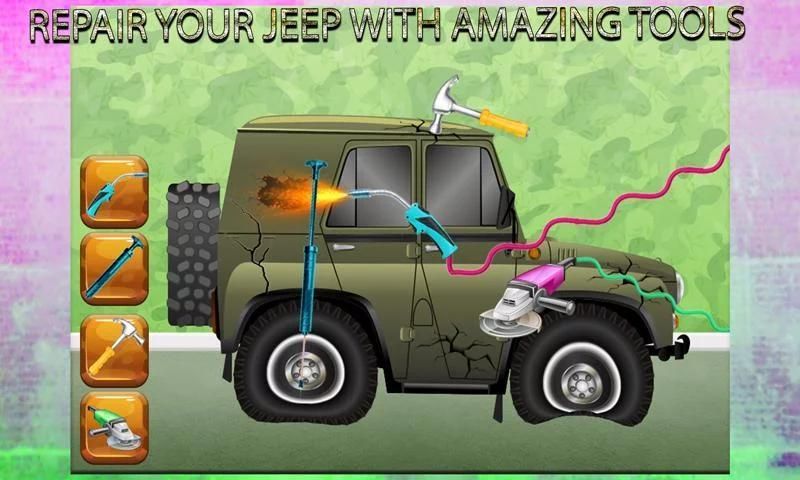 Начать производство детских автомобилей на своем армейском заводе, выбрать корпус шасси армейского джипа. Своп или перетаскивайте детали, чтобы профессионально собрать детали автомобилей. Входите в обувь автомеханика на этом автомобиле. Моделирование 2017. Устраните поврежденные детали, заполните давление воздуха в шинах, отрегулируйте двигатель и закрасьте этот гараж для детей.
