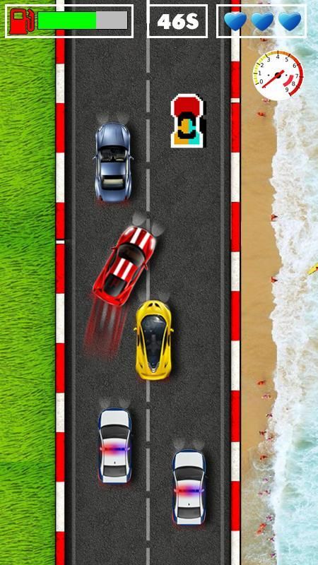 Наслаждайтесь этой реальной гоночной игры, как это сложно, как игрок, у вас есть ограниченное время, а также топливо. Конечно, вы можете заработать топливо, прикоснувшись многоцветные автомобили, как бонусы. Если вы врезаться другой автомобиль, который Вы могли бы пролито патчи нефти на земле и начинают вращаться и врезался в перила или даже на пляже.