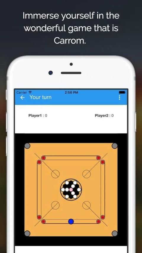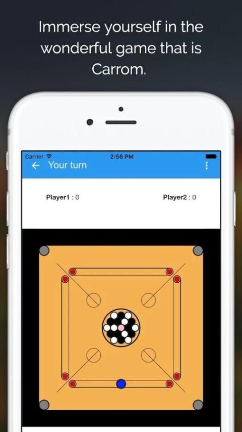 Carrom настольная игра 2 игрока, где каждый игрок назначается цветной кусок (черный или белый), а цель состоит в том, чтобы карман как можно больше монет, принадлежащих к вам в том числе окончательной королевы монеты.