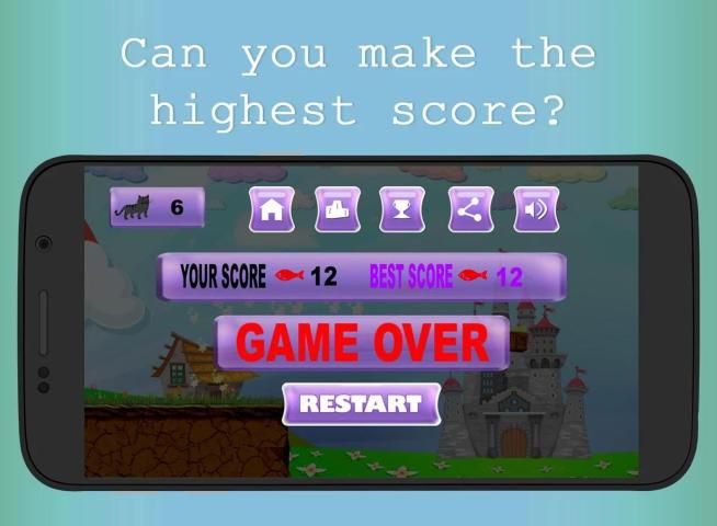 Помогите кошку, чтобы пройти через препятствие в волшебном мире, чтобы выжить, и помочь ему получить столько рыбы, сколько он может достичь высокого балла.