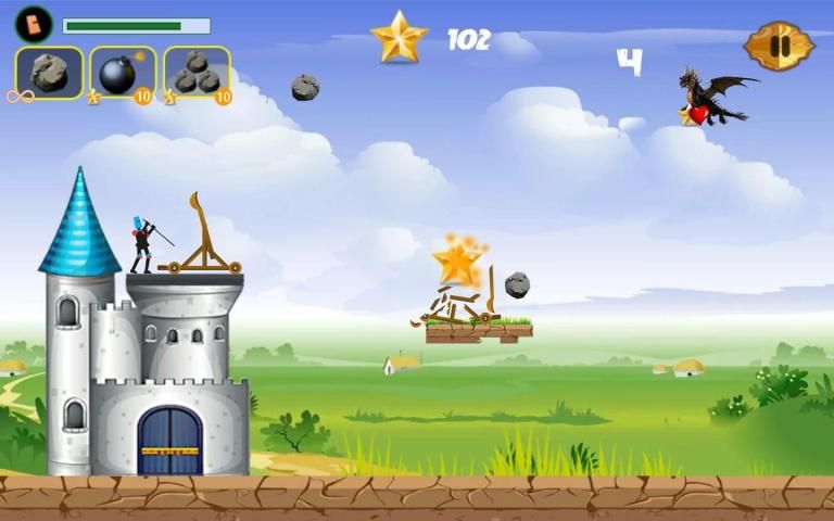 Throw the stones from catapult on the enemy to complete the missions. This catapult fight game has a simple intuitive control. Tap on the screen and pull to charge the catapult and select the tension force. Release to launch the projectile into the enemy. In the "Catapult Fight" game you must help the stickman to defend his castle from the siege weapons of the enemy.