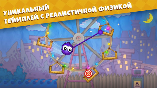 Пушистик не сдается на пути к заветной красной конфете. Хвостом и присоской - проложи путь к победе, преодолев все препятствия на своём пути и поймай красные конфетки.
