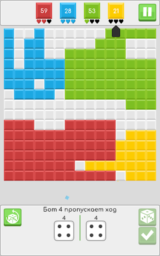 Победи противника – захвати как можно больше клеток! Попробуй свои силы в этой головоломке. Кидай кубики и продумывай каждый шаг, чтобы он не стал последним. Не сдавайся! И тебе обязательно повезет в следующий раз.