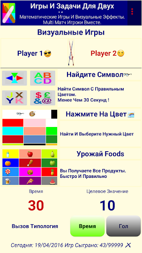 Два игрока одновременно играть с того же устройства!