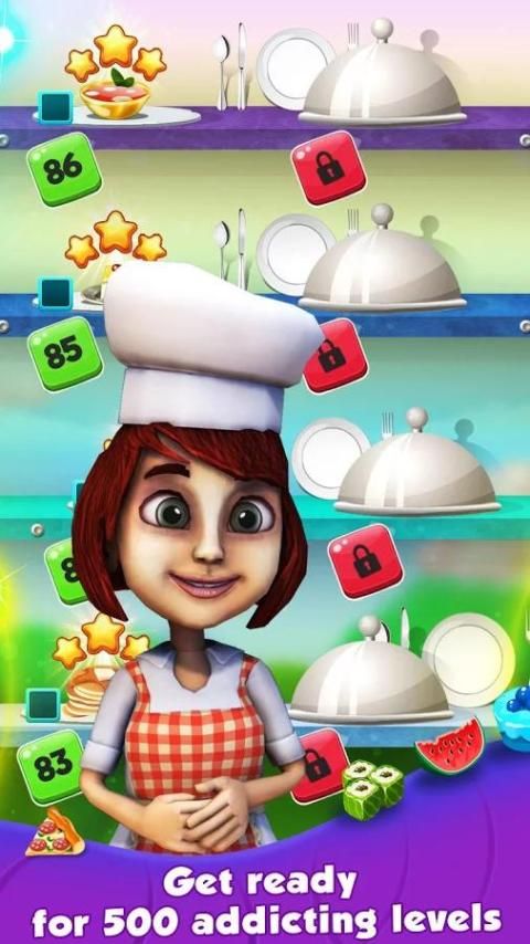 Быть частью шеф-повара История и матч заказов путем подключения 3 или более одного и того же пищевого плитки в наименьшее число ходов возможно!