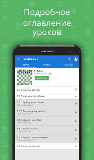 Также в программе содержится теоретический раздел, в котором поясняются методы игры в определенной стадии партии на реальных примерах. Теоретические уроки интерактивны, то есть вы можете не только читать текст уроков, но и делать ходы на доске и самостоятельно разбирать непонятные моменты.