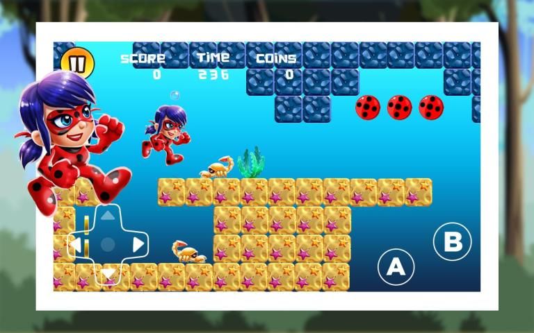 +, Съев яблоко вы станете супер Серебряный Божья коровка, получить магические силы, а затем быть в состоянии уничтожить кирпичи!