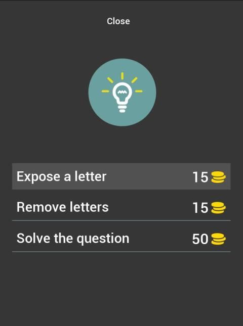Спросите своих друзей за советом или использовать ваши очки (монеты), чтобы получить советы, если вы не знаете правильный ответ.