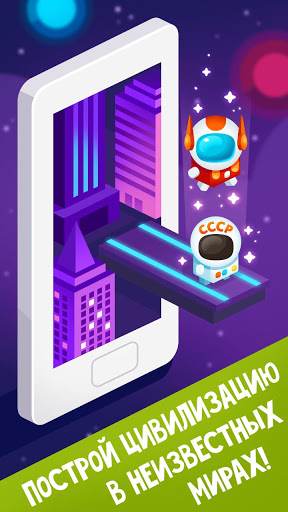 Построй цивилизацию и пройди все этапы! Троглодит, неандерталец, древний человек из таких государств, как Греция, Рим и Египет, а также викинги, рыцари и мушкетеры!Каждая новая эра приближает тебя к моменту, когда твоя цывилизация выйдет в космос и заселит Луну!