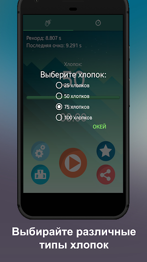 В этой игре вы будете оценивать свою способность к хлопанью. За сколько секунд вы можете похлопать 25, 50 ... хлопков. Кроме того, вы можете установить таймер для хлопка. Соревнуйтесь со своими друзьями и семьей. Проверьте свой рейтинг через доску лидера "Google Play". Знали ли вы, что мировой рекорд по хлопанью составляет 18 хлопков в секунду. Может быть, это ваш шанс побить этот рекорд :) Играйте с удовольствием!
