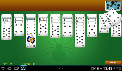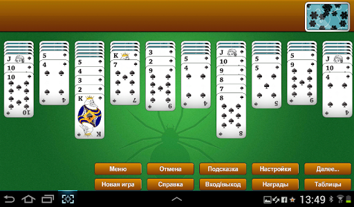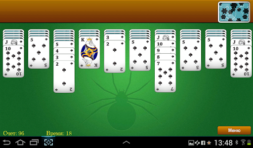 Перед вами классический пасьянс 'Паук', к которому вы так привыкли на других платформах.