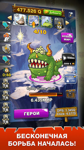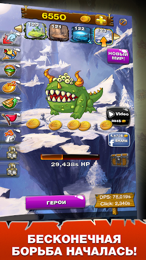 Вместе с Clicker Wars вы окунетесь в мир с прикольными монстрами, юморными героями и миллиардами биллионов квинтиллионов золота!