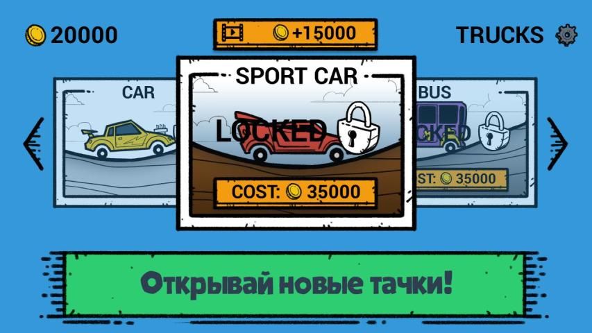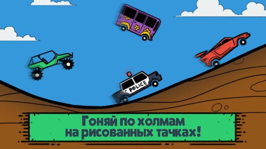 Веселые нарисованные гонки по горам для самых смелых! Ездить на обычной машине по горам слишком скучно! Добавь немного цвета и веселья - нарисованные игры увлекательнее обычных! Выполняй трюки на рисованных тачках, но будь осторожен - даже в нарисованном мире физика реальна и сурова! Попробуй преодолеть гравитацию и не упасть! Рисованная горная тачка нуждается в прокачке для преодоления различных трасс, как и реальные машины! Необходимо не только ездить по горам, но и собирать монеты и горючее! Собирай как можно больше и попробуй не сдаться в нарисованных гонках, когда гравитация опрокинет тебя! Лучше гор могут быть только горы? Тачки! А лучше и то, и другое! Color Hill Racer - веселая нарисованная игра для отважных покорителей гравитации! Ездить по страницам скетчбука на рисованных тачках и победить гравитацию!