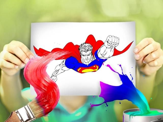 • Выберите различные цвета, чтобы нарисовать супергероя колорирующей книги.
