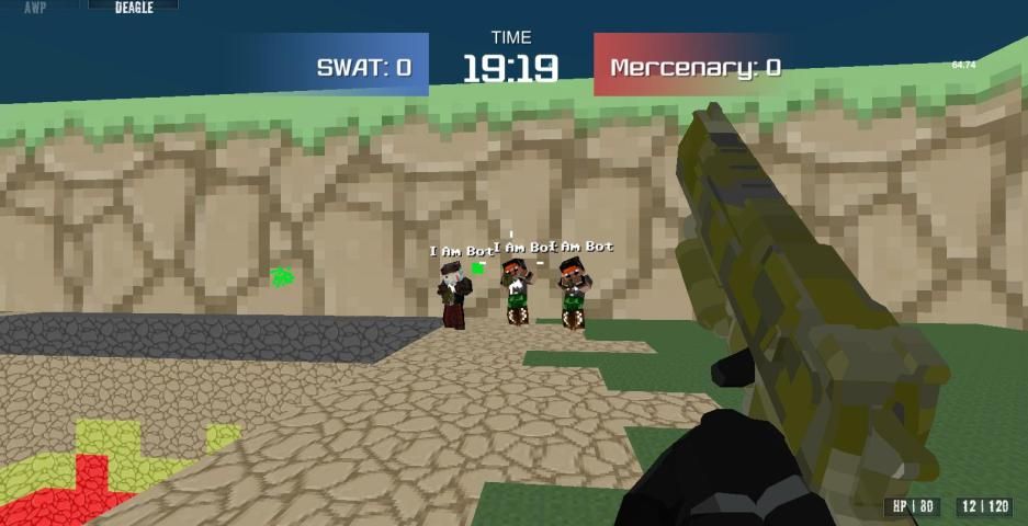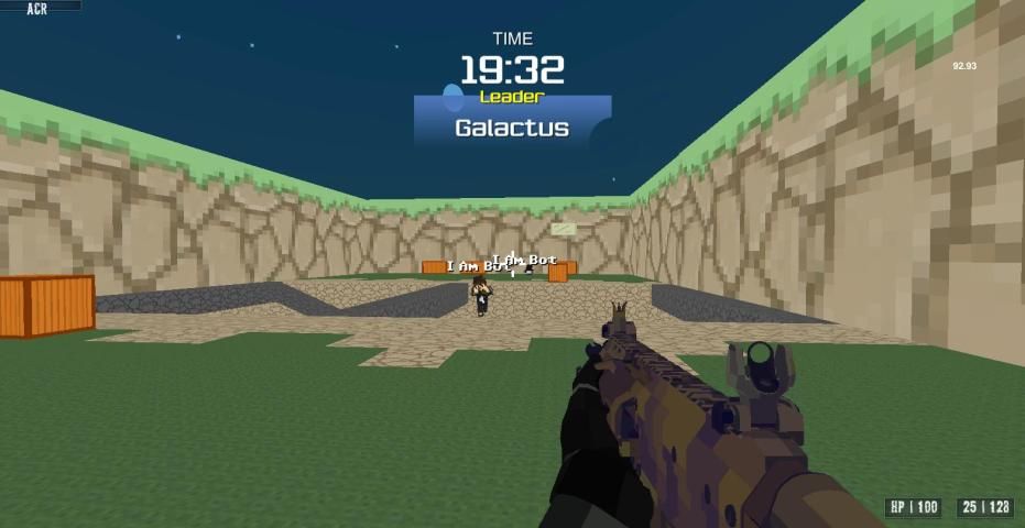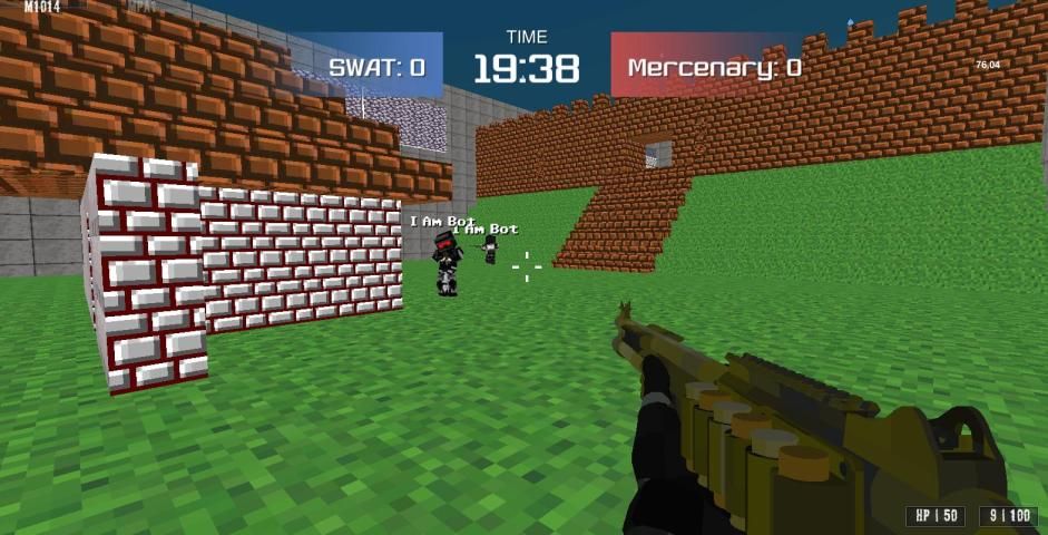 В игре Умный AI Bot и смешной карманный кадр блок стиль шутер онлайн.