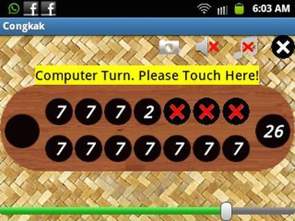 Congkak является традиционная игра очень хорошо известна в таких странах, как Индонезия, Малайзия, Бруней, Сингапур, Таиланд и Филиппин. Игроки практикуется возможность «ментальной расчета", чтобы выиграть игру. Игрок с эффективной возможностью вычисляет несколько шагов вперед, будет иметь преимущество в collectiong больше очков, и, чтобы выиграть игру.