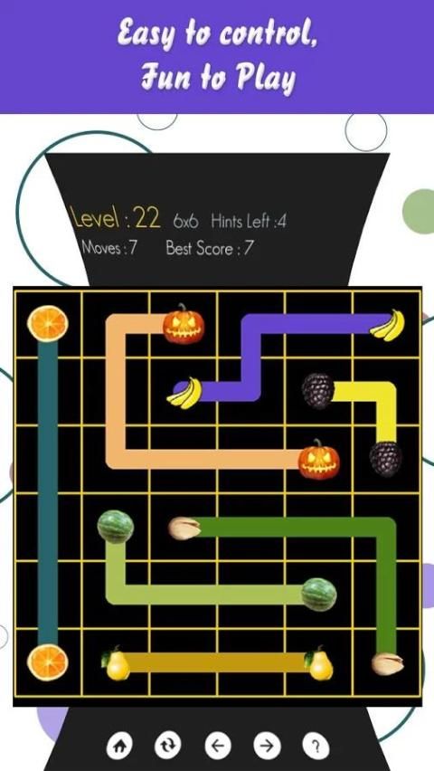 Нарисуйте линии от точки до точки одного и того же цвета, чтобы завершить уровень. Сделайте ваши линии Перемещение и быть осторожными на матч - не перекрывают друг друга, или пересекать их.