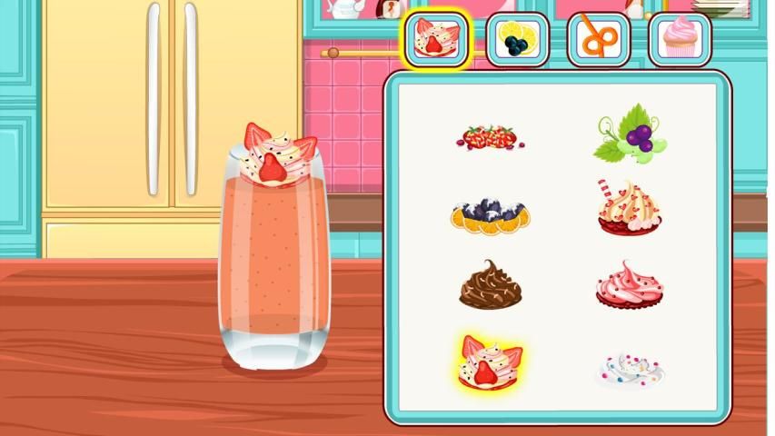 , Вы можете выбрать между различными кремами, ванили, клубники, вишни или апельсина. Тем не менее вы должны поместить их и некоторые шары взбитые сливки: клубника со взбитыми сливками, темный шоколад, ваниль, клубника из белого шоколада малины или вишни. Теперь вы закончили сок базу, и вы должны сделать второй этаж. Опять же, вы должны выбрать еще один этаж. Вам нужно выбрать еще раз для второго этажа крем, ваниль, шоколад, клубника, малина, вишня, киви и банан. После этого вы должны поставить этот крем и после этого вы должны закончил второй этаж. Следуйте третий этаж, который все равно, как и другие 2. Сок готов, и мы надеется пойти к нашему другу.
