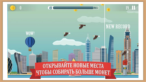- Прокачка силы полета, емкости бензобака, щита, монетного магнита, множителя монет