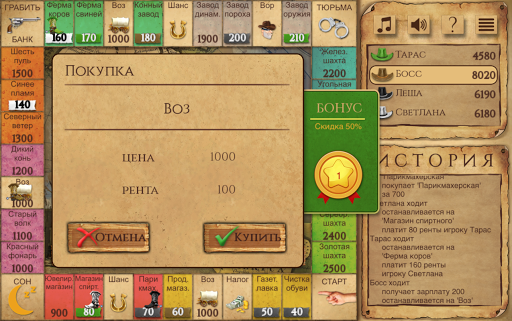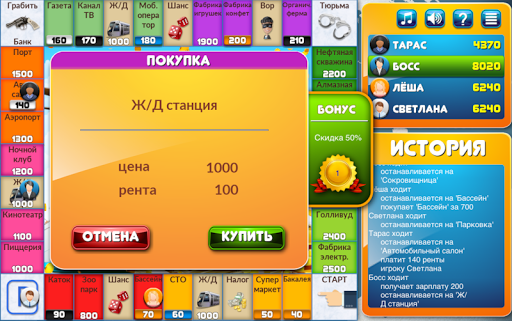 Покупайте бизнес, стройте монополию, получайте прибыль и доведите оппонентов до банкротства!