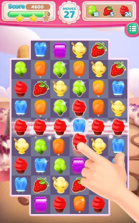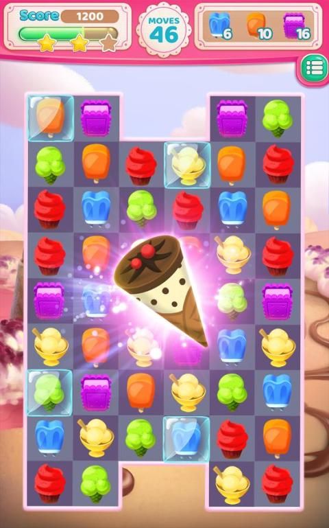 Играйте в удивительную игру-головоломку Cream Crush Match 3, раздавите сладкие конусы и станьте мастером мороженого!