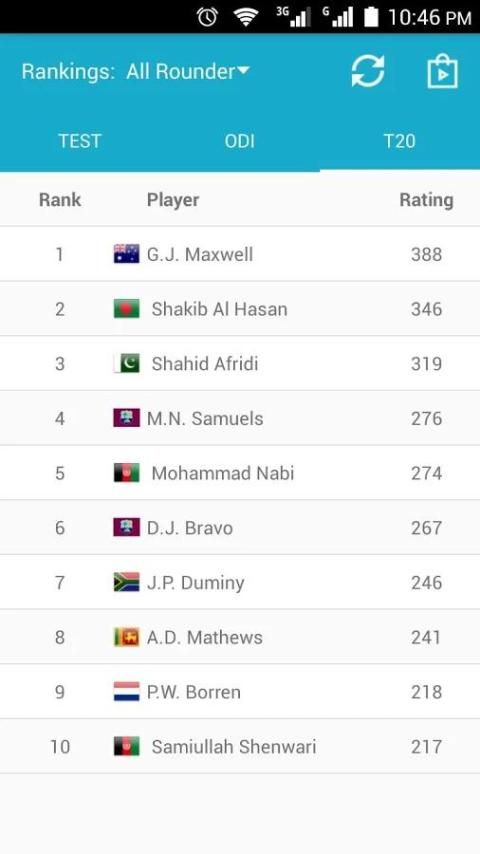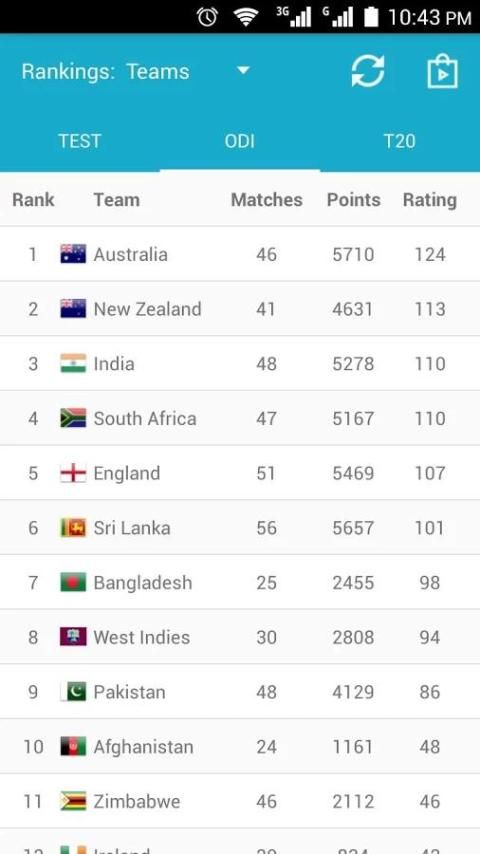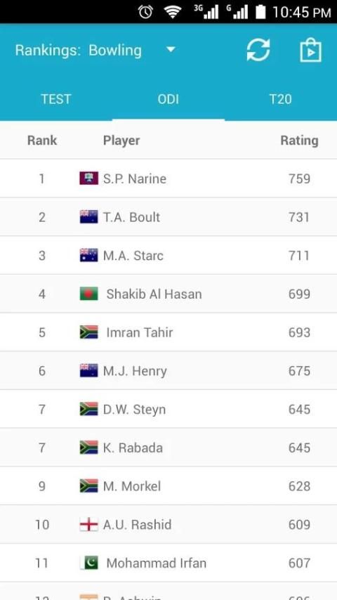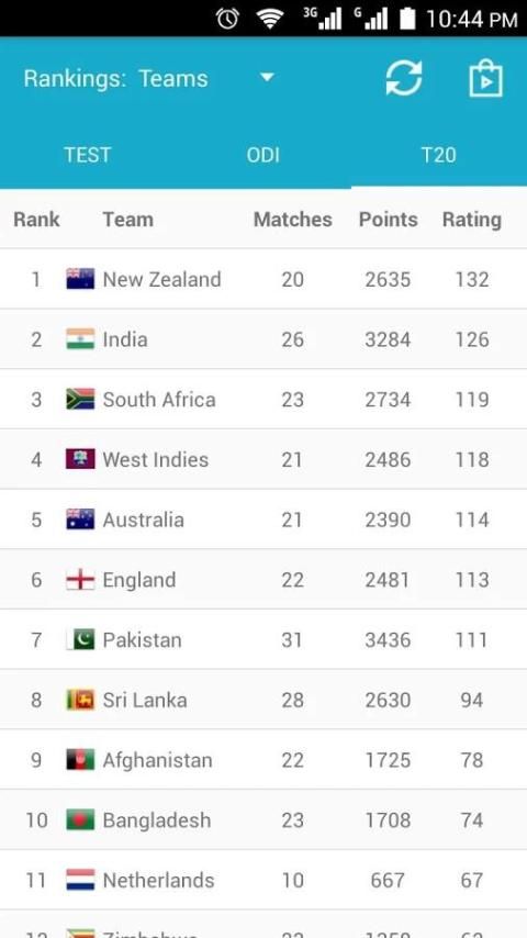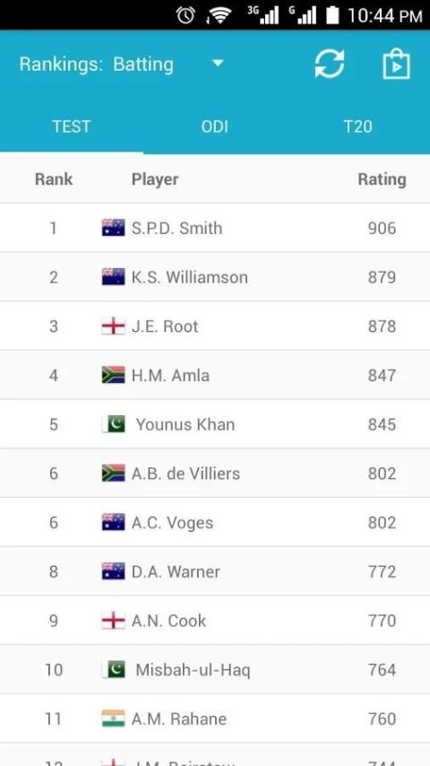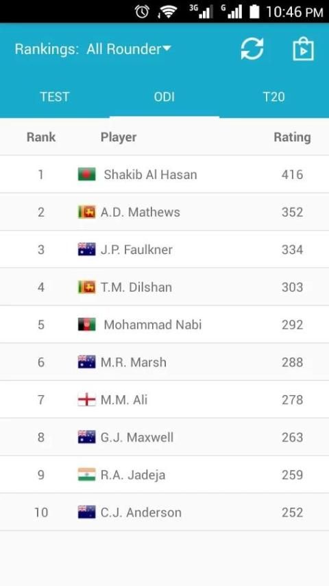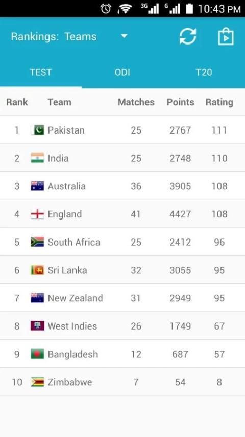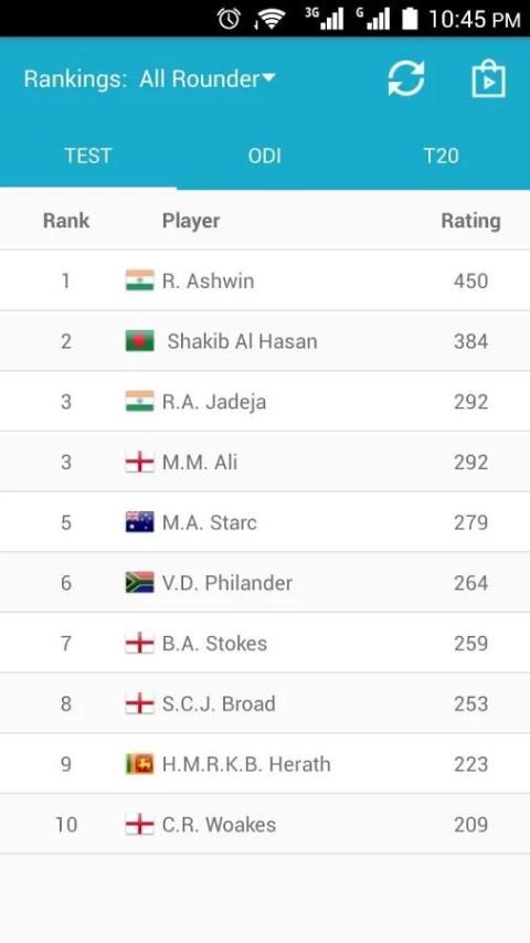 Это большое приложение для любителей игры в крикет. Они могут проверить обновление крикету рейтинга для испытания, ODI и T20 матчи. Вы также можете найти игроков рейтинга для ватин, боулинг и все-лапта. Это приложение автоматически обновляет статистику для ICC рейтинга, рейтинги и пунктов.