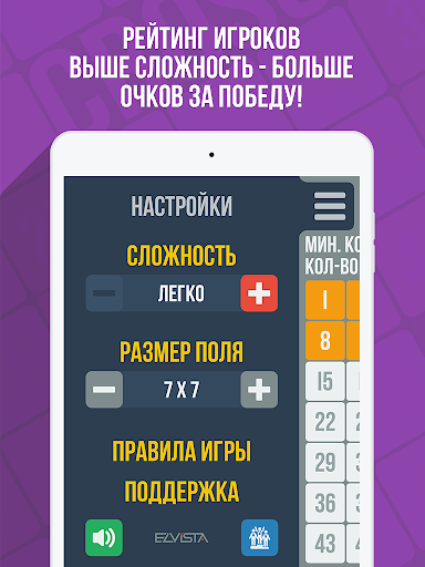- Рейтинг игроков. Выше сложность - больше очков за победу.