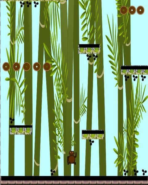 Move your monkey across the bamboo jungle. Swing over the revolving turbin and make sure you jump across them to avoid from being killed. At the same time cross over to the next jungle platform to collect as many road points which you will use as AMMO to kill the Crossy Monkey Bad Boss.