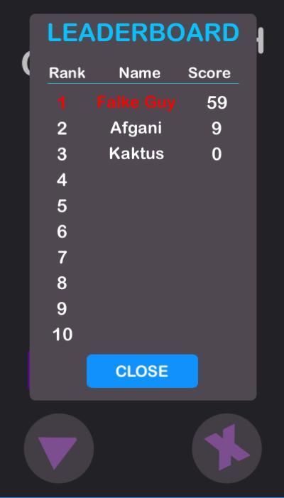 Tab экран, чтобы заставить игрока движение вверх. Попробуйте поймать все входящие старты, не сталкиваясь в другие препятствия. Вы можете пропустить максимум 2 звезды, если вы пропустите более чем 2 звезды игра закончится. Вы можете увидеть пропущенные звезды UI слева вверху. Вы не можете выйти из зрения экрана, если вы делаете, у вас есть 2 секунды, чтобы вернуться еще игра закончена.