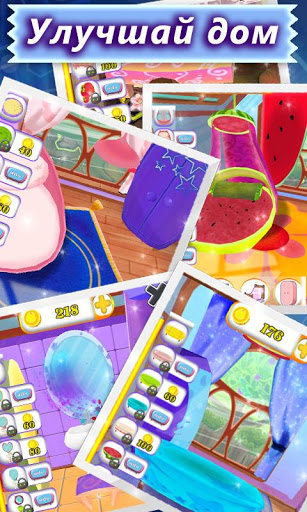 На заработанные монетки вы сможете улучшать жильё вашего кота. Вы сможете разукрасить различные комнаты на свой вкус, установить во дворе забор и скамейку.