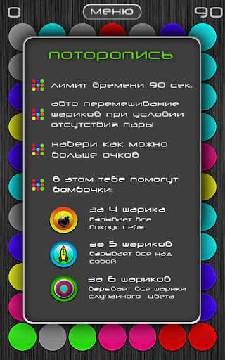 Выбирайте группы шариков (2 и более) и касанием разрушайте их.