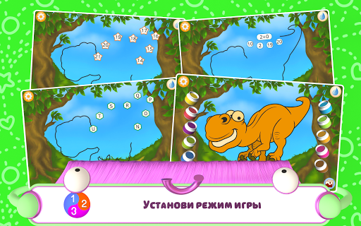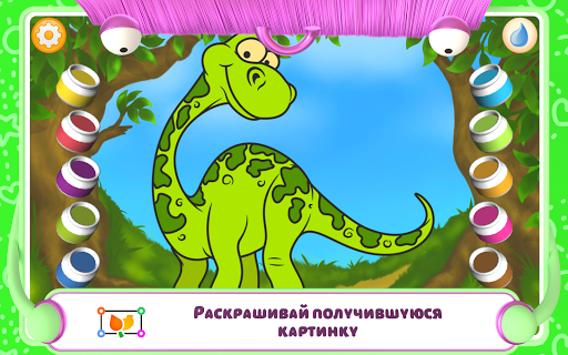 Режим раскраски понравиться маленьким художникам. Тут можно сразу раскрашивать картинки, не соединяя точек. Чтобы сделать процесс рисования более интересным и творческим, вы можете изменить любой предустановленный цвет. Для этого нужно нажать и удерживать баночку с краской и в открывшейся палитре выбрать понравившейся оттенок.