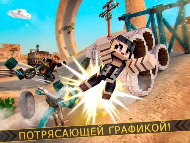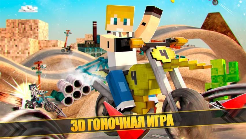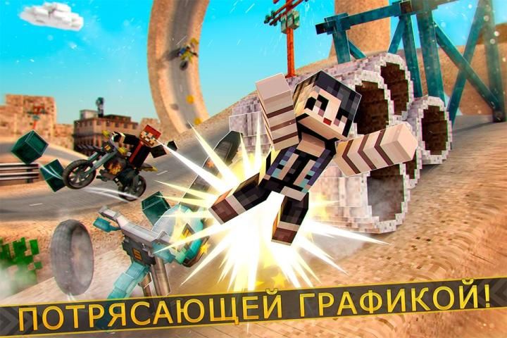 Драйв ваш Блочный мотоцикле через пустыню уклонение все препятствия, делать трюки и добавляя все вопросы, которые вы можете.